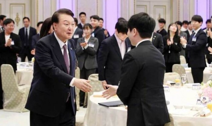 이후 대통령은 청년 화이트해커들과 단체 사진을 찍고 한 명 한 명 악수로 격려하며 행사를 마무리했다.