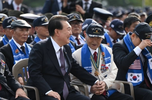 대통령은 이후 평화의 광장으로 이동해 흥남철수작전에 참전한 김응선 옹(102세)과 유엔군으로 참전한 켄림 힌쇼 모이(Kenlim Hinshaw Moy, 92세) 美 참전용사를 만나 오늘 기념행사에서 뵙게 되어 영광이라며 인사를 전하고 건강하신지 등의 안부를 물었습니다. 이어서 대통령은 두 참전용사의 손을 꼭 잡고 행사장에 나란히 동반 입장해 참석자들의 뜨거운 환영을 받았다.