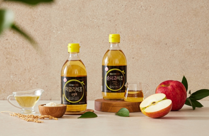 신제품은 이천쌀로 만든 ‘막걸리식초’, 청송사과로 만든 ‘순사과식초’ 등 2종으로 구성됐다. 엄선된 원물을 오뚜기가 직접 알코올 발효와 초산 발효를 진해 부드럽고 깊은 풍미를 느낄 수 있으며, 일반 식초 대비 미네랄과 아미노산, 유기산 등의 함량이 높은 것이 특징이다.