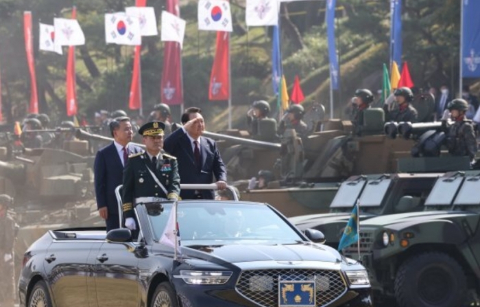 윤석열 대통령은 오늘(9. 26, 화) 서울공항에서 열린 건군 제75주년 국군의 날 기념행사에 이어 오후에는 광화문에서 시가행진을 주관했다. 이번 시가행진은 지난 2013년 이후 10년 만에 개최됐으며, 4,000여 명의 병력과 170여 대의 장비가 참가한 가운데 대규모로 열렸습니다. 시가행진이 진행된 광화문은 인천상륙작전에 성공한 우리 군이 서울중앙청에 태극기를 게양한 곳이다.