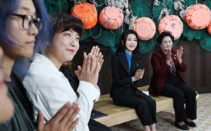 김 여사는 “제주 해녀는 우리의 소중한 문화”라고 하면서, “전쟁 시절 제주를 일구고 자녀를 키워냈을 뿐 아니라 전문성을 갖고 자신의 일을 개척한 강한 어머니를 상징한다”고 했습니다. 또, “해녀 인구 감소와 고령화, 기후변화와 해양환경 오염, 수산자원 감소 등 여러 어려움에도 불구하고 전통을 지켜주고 계셔서 감사하다”면서 “여러분들이 손으로 직접 딴 안전한 해산물이 많은 국민들의 식탁에 오르고 있다”고 격려했습니다.