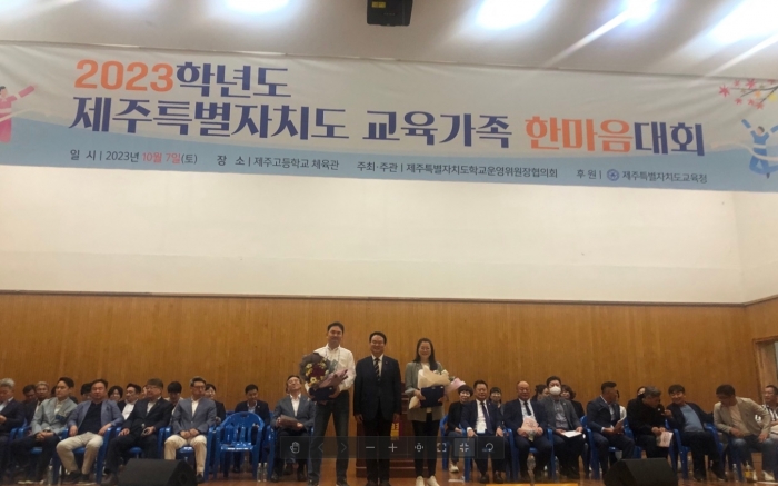 김희현 제주특별자치도 정무부지사는 7일 오전 제주도 학교운영위원장협의회(회장 김남도)가 주최한 2023학년도 제주도 교육가족 한마음대회에 참석해 교육가족의 노고에 감사를 표하고, 참석자들에게 격려를 전했다.